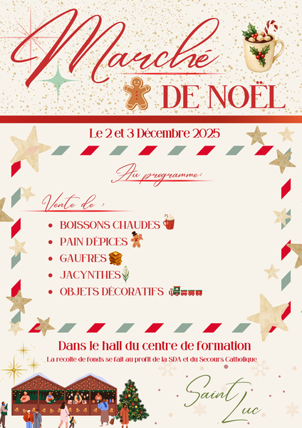 Marché de Noël Un événement interne a été crée à destination du personnel administratif et enseignant du lycée et de l’UFA invité à découvrir le marché de noël dans le hall du centre de formation le 2 et 3 Décembre 2025. Un événement interne a été crée à destination du