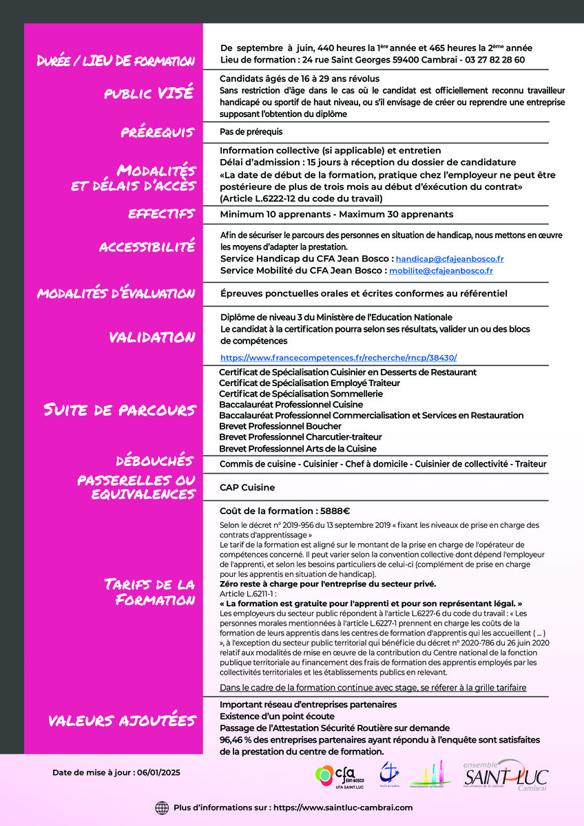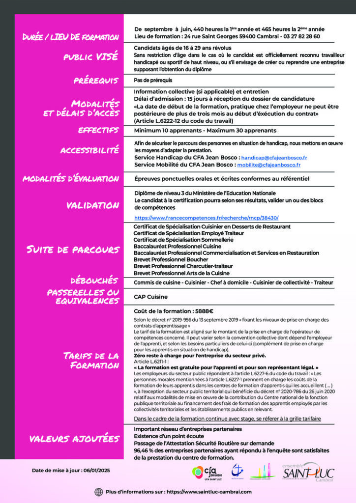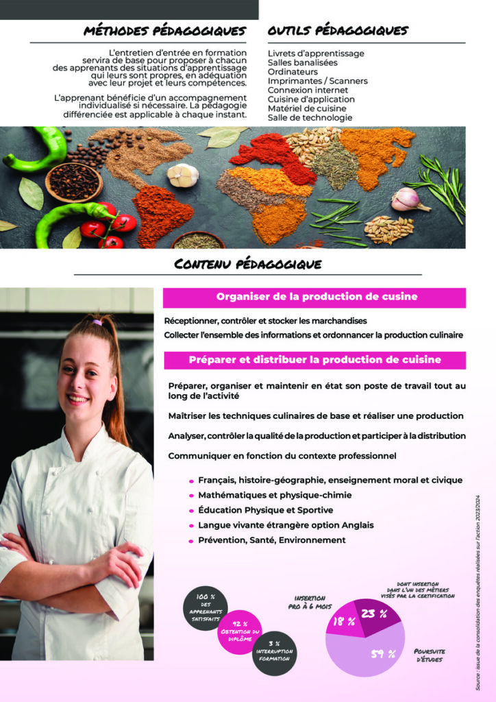 La formation s’adresse à toute personne souhaitant acquérir des compétences professionnelles dans le domaine de la cuisine