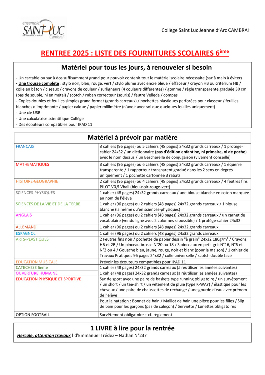 – le jour de la rentrée se déroulant entièrement avec le professeur principal, il est inutile d’apporter tous les cahiers le premier jour ! Les élèves viendront en classe avec les jours suivants, selon les matières de l’emploi du temps.