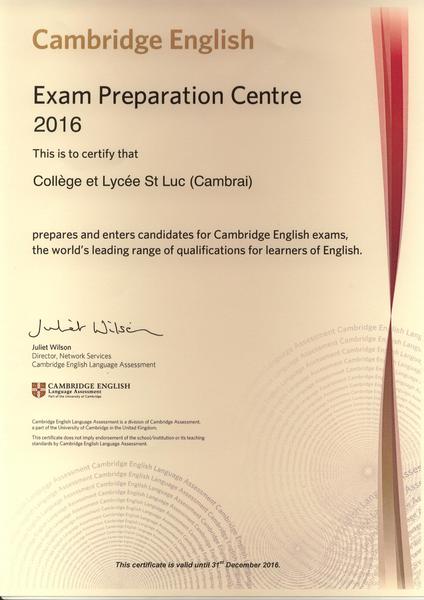 • English First : Certification Cambridge (le lycée général est habilité à la préparation et au passage des examens de Cambridge).