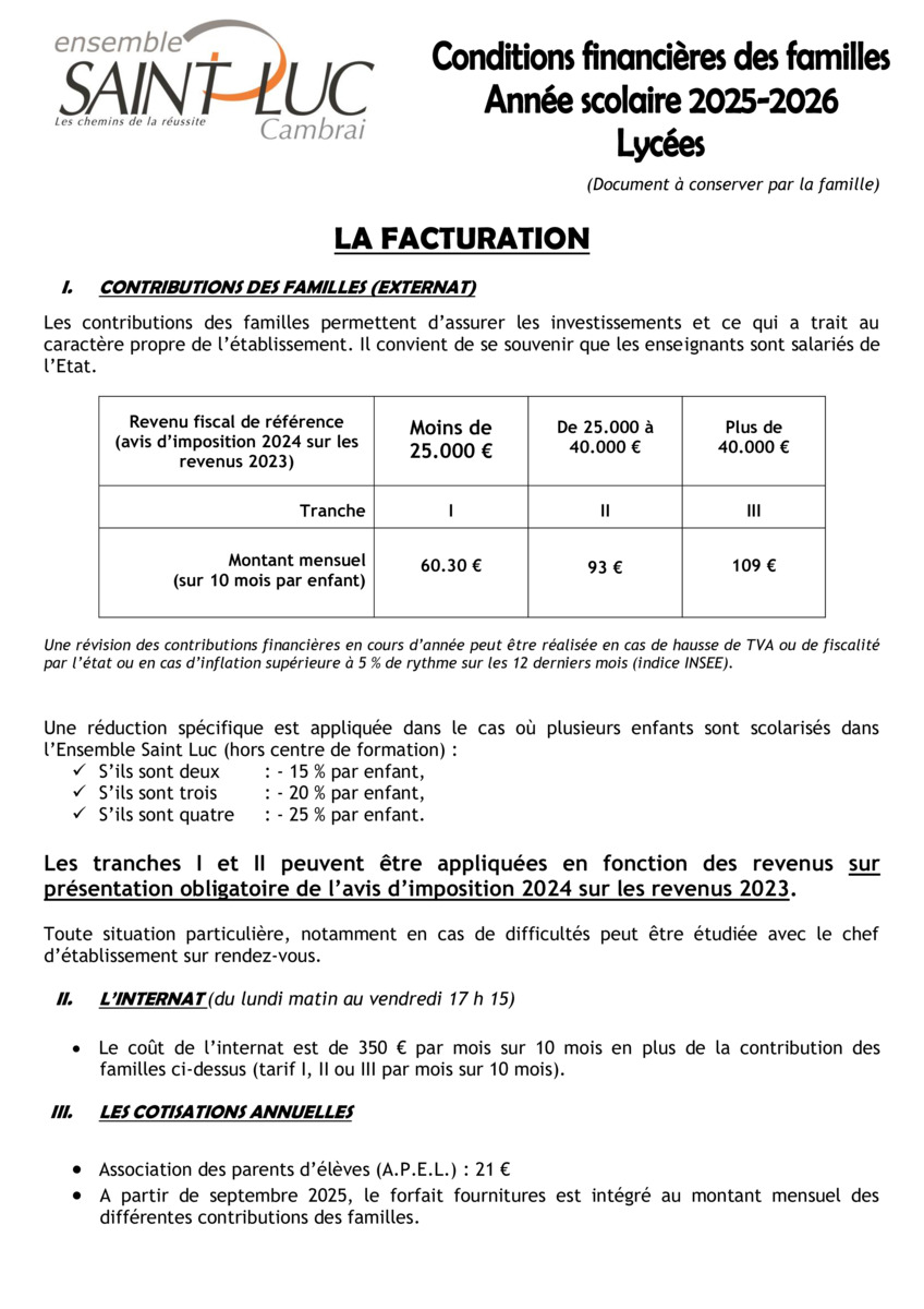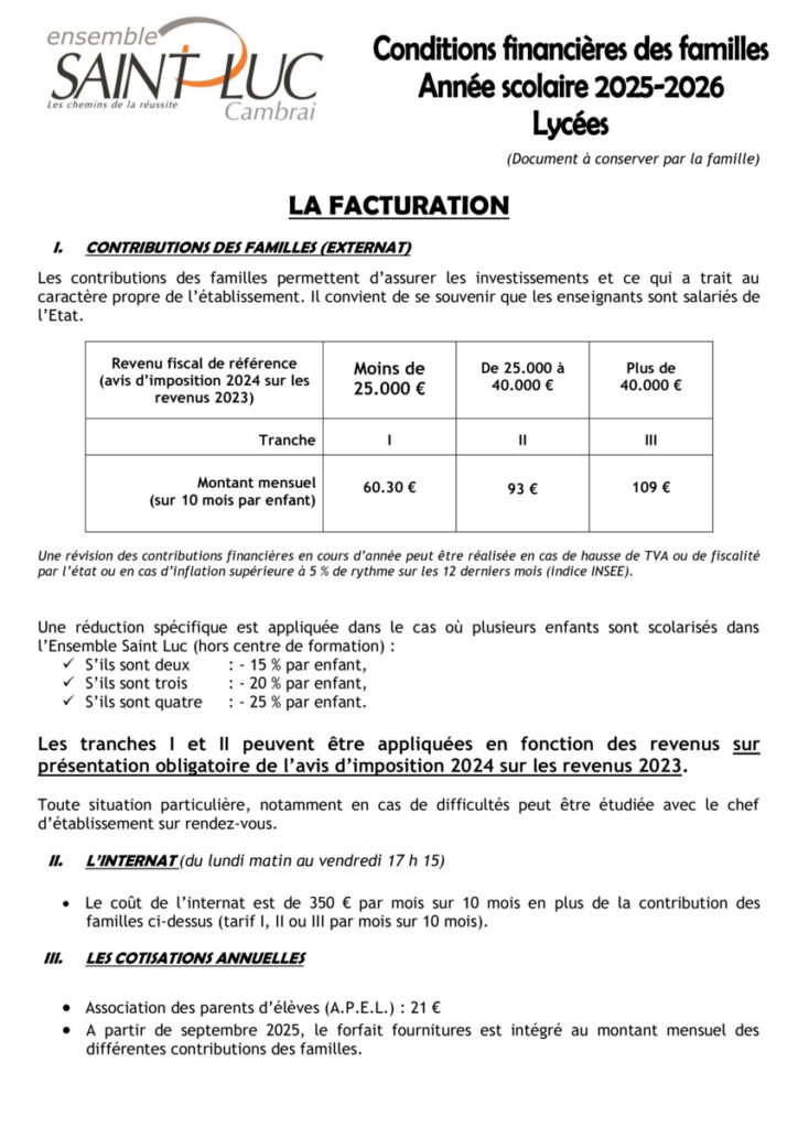 L’ensemble Saint Luc vous prie de trouver ci-joint ses tarifs pour l’année prochaine. Etablissement sous contrat d’association, nos élèves peuvent bénéficier des bourses pour toutes nos formations initiales.
